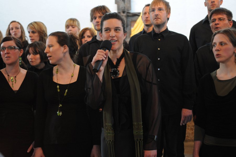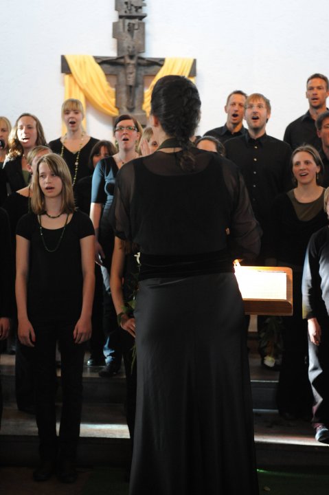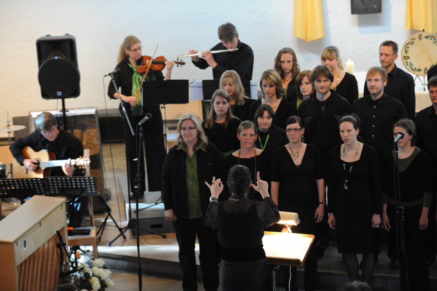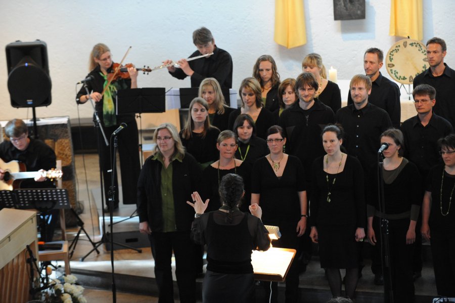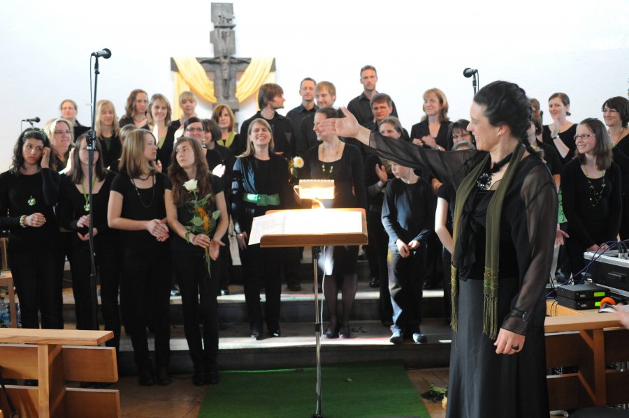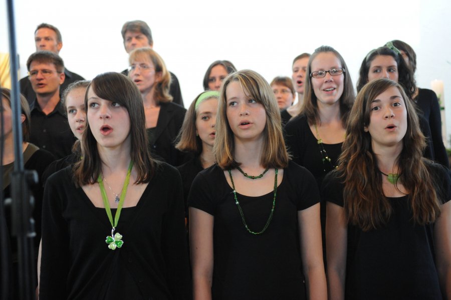 Zu unserem „Irischen Konzert“ am 25.04.2010 in der vollbesetzten Kirche herrschte schon vor Beginn unseres Konzerts eine gespannte, ruhige, fast andächtige Stimmung. Das erst Lied „At daybreak“ (Bei Tagesanbruch) startete behutsam mit zwei Solistinnen, wie es eine frühe Morgenstunde erwarten lässt. Nach und nach traten dann die anderen Chormitglieder auf die Bühne. Zur zweiten und dritten Strophe kamen das „Chörle“ und „SingIng“ dazu und das Lied entfaltete seine ganze Kraft. Abwechslungsreich ging es weiter mit gefühlvollen Chorstücken, die von choreigenen Solo-Sängerinnen und einem Sänger bereichert wurden, sowie Instrumentalstücken mit Geige und Querflöte in den Hauptstimmen, die den typischen Klang irischer Musik vermittelten. Für einen satten „Klangrasen“ sorgte bei allen Stücken die Möglinger Band „ungewohnt“ und verlieh den Liedern die nötige Tiefe. Weitere solistische Highlights wurden durch die fundierte und klaren Stimme der Mezzosopranistin Gudrun Köllner sowie dem glockenhellen, gefühlvollen Sopran von Simone Jakob gesetzt.