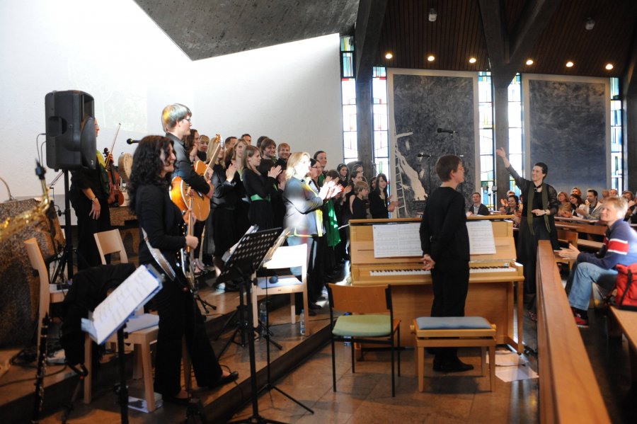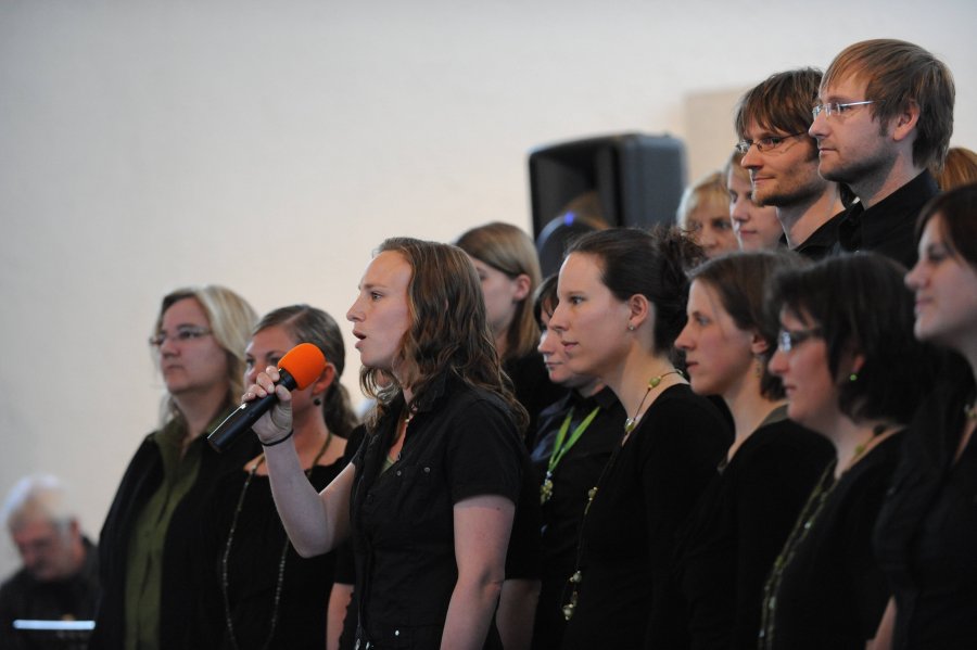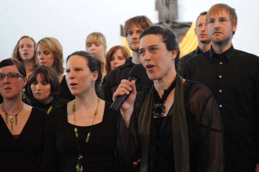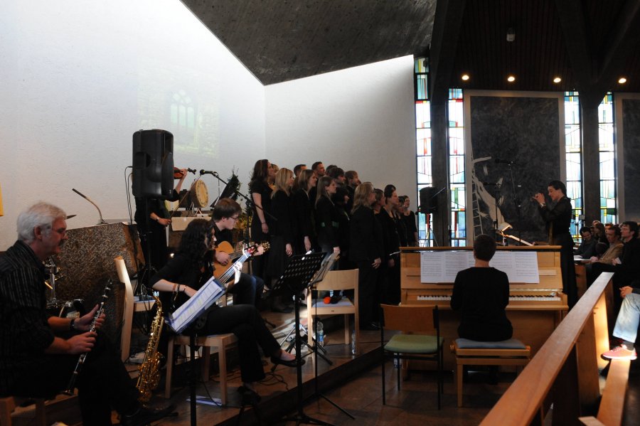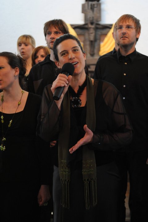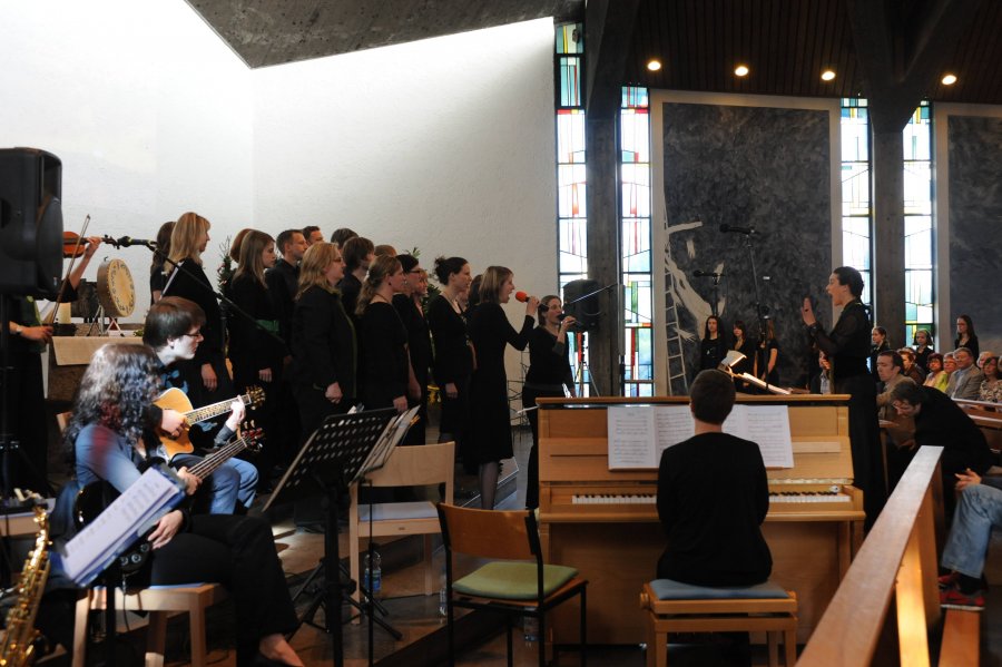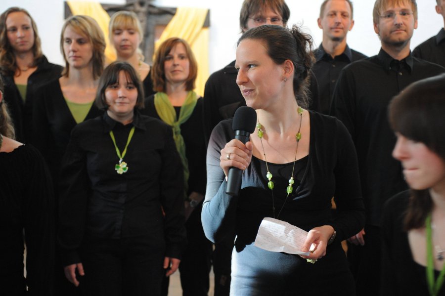 Zu unserem „Irischen Konzert“ am 25.04.2010 in der vollbesetzten Kirche herrschte schon vor Beginn unseres Konzerts eine gespannte, ruhige, fast andächtige Stimmung. Das erst Lied „At daybreak“ (Bei Tagesanbruch) startete behutsam mit zwei Solistinnen, wie es eine frühe Morgenstunde erwarten lässt. Nach und nach traten dann die anderen Chormitglieder auf die Bühne. Zur zweiten und dritten Strophe kamen das „Chörle“ und „SingIng“ dazu und das Lied entfaltete seine ganze Kraft. Abwechslungsreich ging es weiter mit gefühlvollen Chorstücken, die von choreigenen Solo-Sängerinnen und einem Sänger bereichert wurden, sowie Instrumentalstücken mit Geige und Querflöte in den Hauptstimmen, die den typischen Klang irischer Musik vermittelten. Für einen satten „Klangrasen“ sorgte bei allen Stücken die Möglinger Band „ungewohnt“ und verlieh den Liedern die nötige Tiefe. Weitere solistische Highlights wurden durch die fundierte und klaren Stimme der Mezzosopranistin Gudrun Köllner sowie dem glockenhellen, gefühlvollen Sopran von Simone Jakob gesetzt.