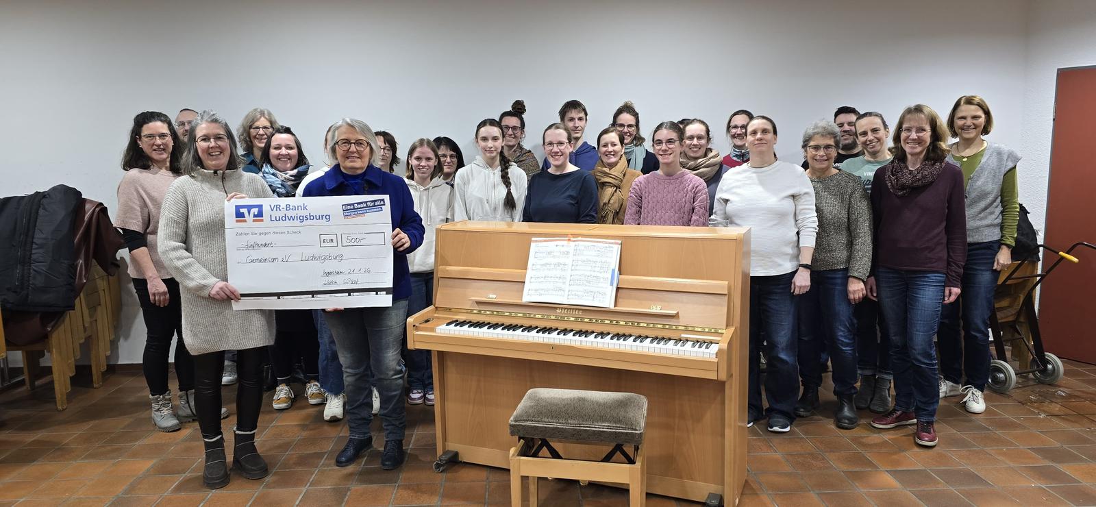 Kürzlich erfolgte die Scheckübergabe mit der Vorsitzenden von „Gemeinsam e.V.“, Frau Petra Nicklas, im Rahmen der wöchentlichen Chorprobe von Chörle und SingIng in Ingersheim.